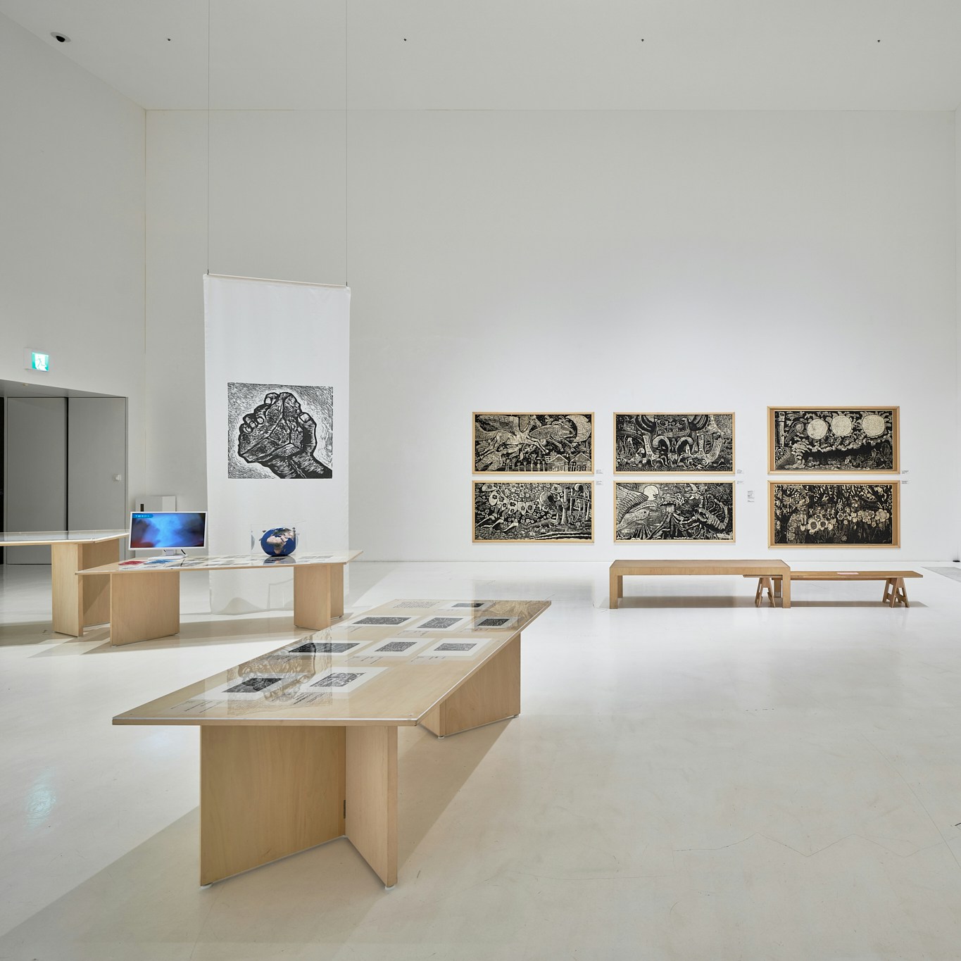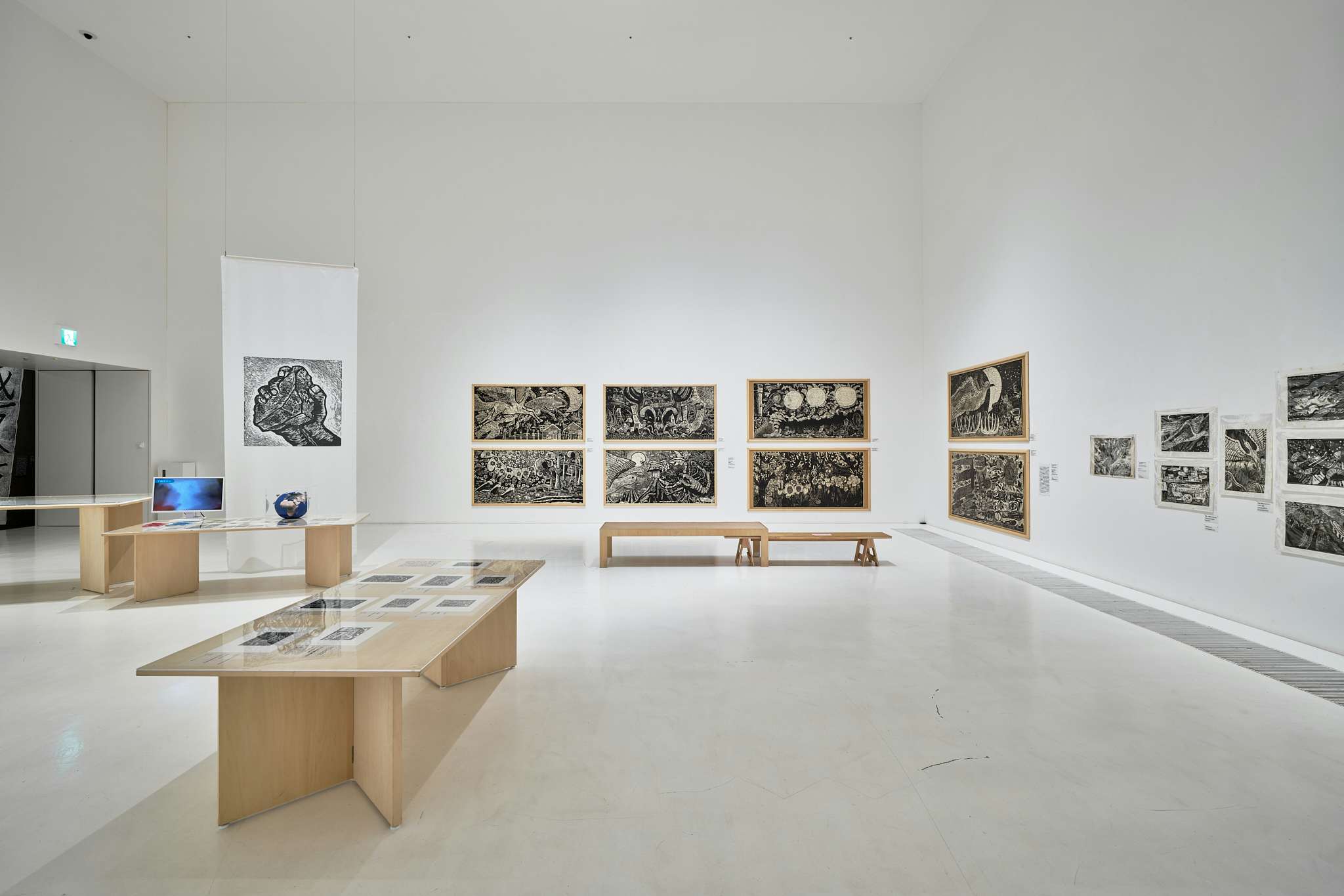 本展は、その問いにひとつのヒントを与えてくれる。青森県内の小中学校で長くつづけられてきた〈教育版画〉に焦点を当て、教育版画運動を支えた戦前の教育者たちの仕事や思想を起点に、 1950〜90年代に制作された県内の教育版画作品、東京を拠点とする版画集団 A3BCや写真家・志賀理江子の活動などが展示されていた。