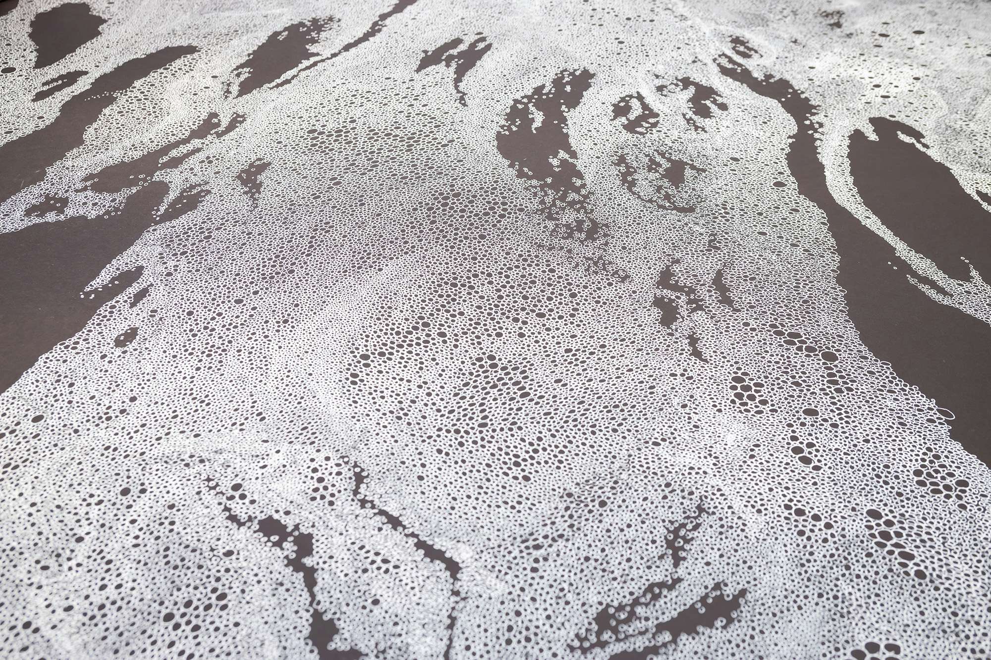 なかでも興味を引いたのは、クラークの作品である。彼⼥は、スコットランドのオークニー諸島で⼈々とともに続けてきた「円を繰り返し描く」⾏為を青森中央高校の生徒や来場者にも開き、集められた⼩瓶の⽔は展覧会終了後、国際芸術センター⻘森の水盤へと注がれた。実際に筆者も、クラークからペンを受け取り、⼩さな円を描き⾜した。クラークと向かい合って座り、静かに泡のような円を描き続ける⾏為は、⾃⾝が⾃然の⼀部へと溶け込んでいくような感覚を持てる瞑想的な体験であった。