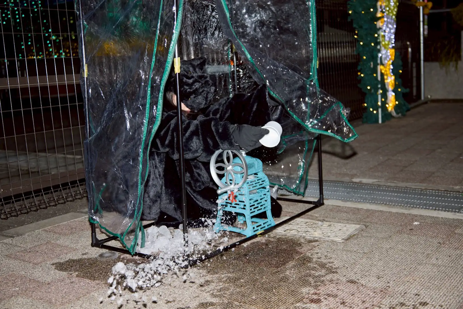 昨年11月27日の19時頃、私は吉祥寺マルイ(*1)へ向かっていた。松岡はるの《生活ってなに》を観るためだ。SNS上で公開された地図によれば、それはエレベーター内に展示されているという。同作は、「ノン」というアートイベントの一部だった(*2)。「ノン」は松岡自身による企画であり、パフォーマンスを中心とした複数の作品を、一晩、ほんの数時間だけ吉祥寺でゲリラ的に出現させる、というのがその基本的な開催形態だ。今回は「第一回」と銘打たれているが、前身である「点滅」(昨年5月に第1回を開催)を含めると、実質的には4回目にあたる。