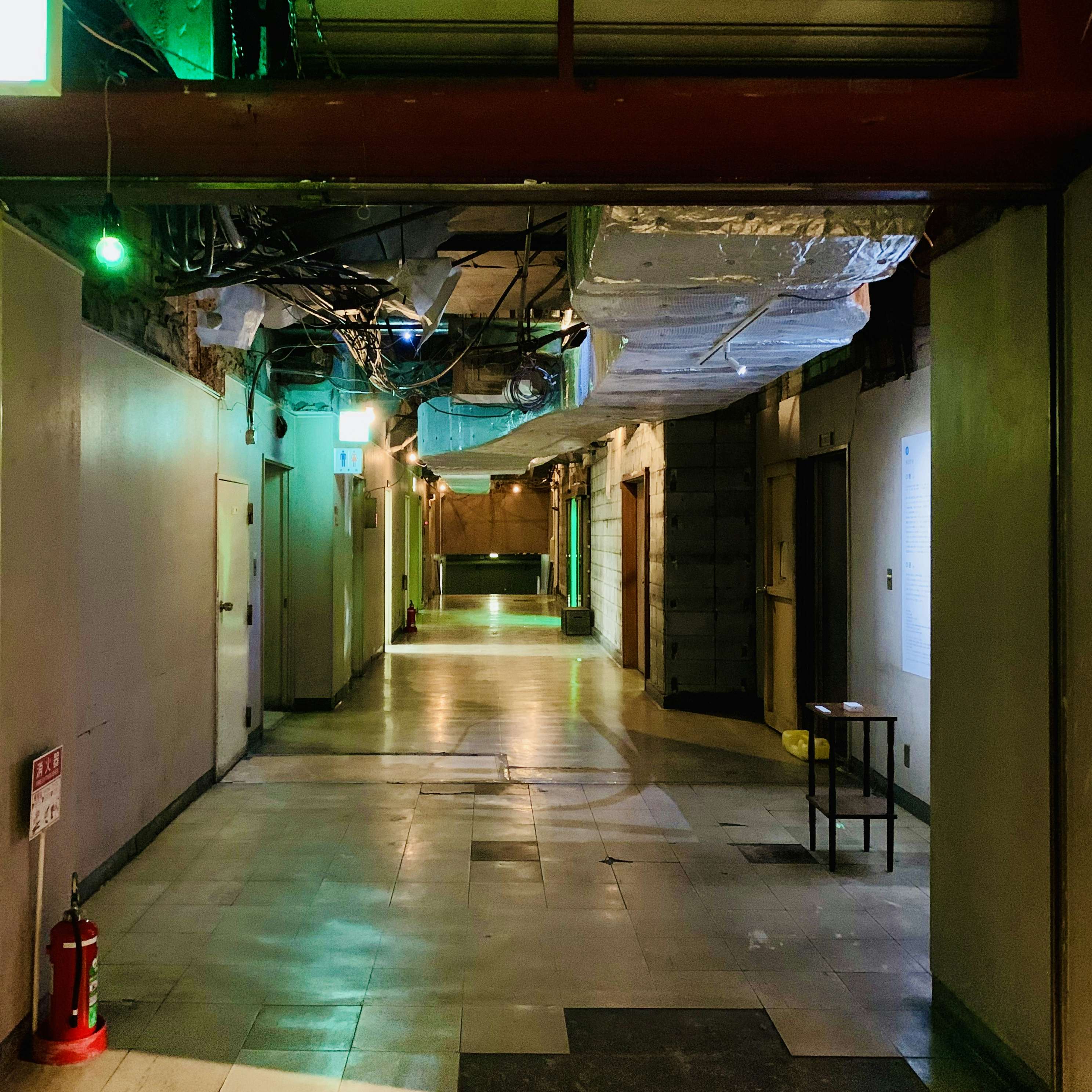 いっぽう、広大な地階を丸ごと作品化した梅田哲也は、その現実を無化してみせる。旧区役所の地階は倉庫であったり、食堂であったり、外部の人目にさらされることのない、バックヤードとして使われてきた。そもそも「公の論理」に厳しく律された上階と比べ、そこで働く人々の「私」が漏れ出る場所でもある。加えて、本来あるべきものをわずかにずらしたり、外したり、移動させることで、地上のルールやヒエラルキーを無効化する梅田独特の手法によって、違和感に肌の粟立つような、広大な「異界」を出現させた。