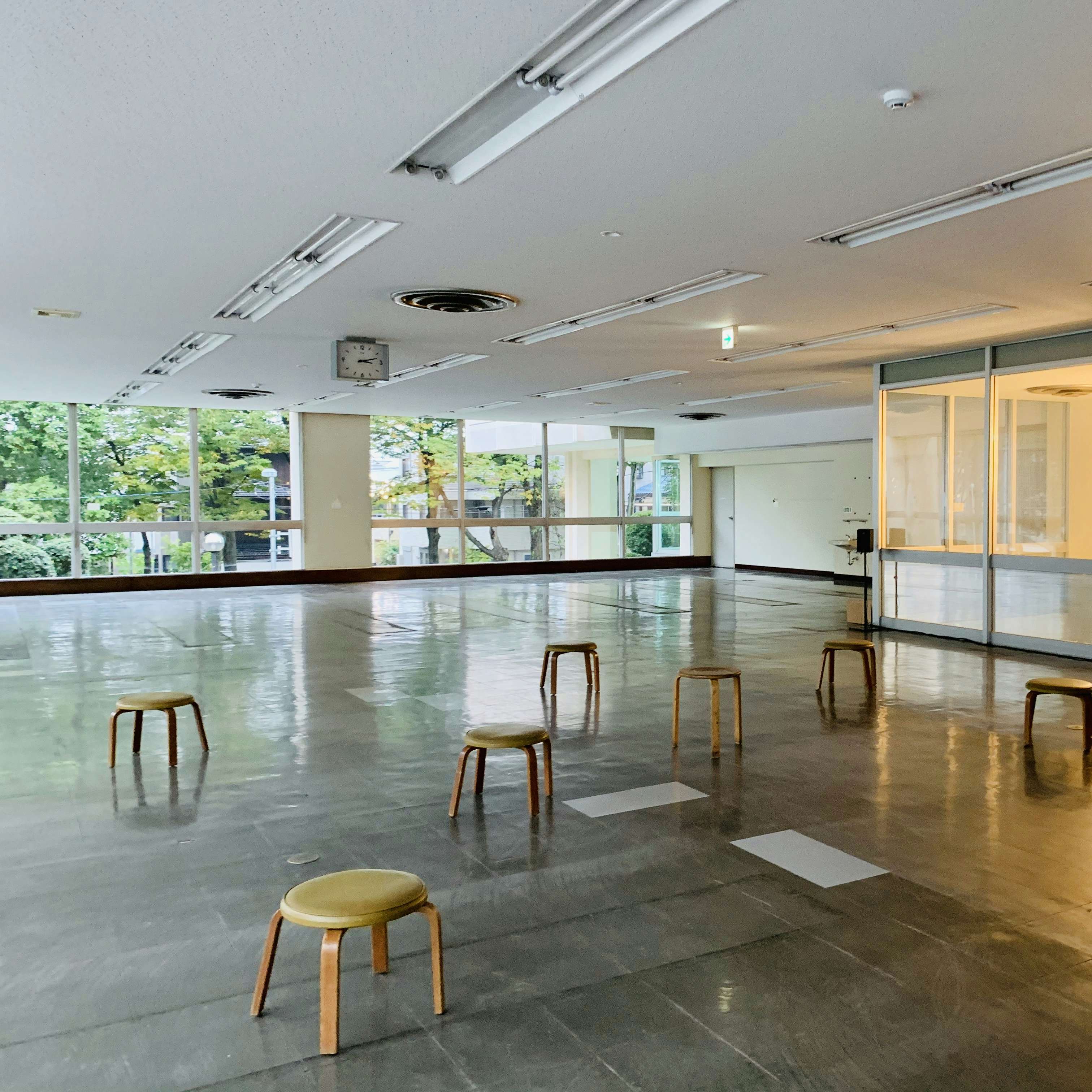 本来であれば、バナーが埋め尽くし、祝祭ムードで沸き返っていたであろう大宮駅前の大通りは、見慣れた雑踏が戻りつつある。疫病からの「回復」の結果とは言い難い人波に戸惑いながら、ブループリントのような手元のガイドを頼りに進む。そして「望むのは世界の美しさであり、ひとりひとりの美しさなど」「放棄して、それだけを成し遂げることこそが、あの夜の」と、白い塗料フィルムで記された、最果タヒの詩が行きつ戻りつする地下通路を通り、主会場のひとつである旧大宮区役所の、カラフルに塗り分けられた玄関ホールへとたどり着く頃には、いつの間にか上演の始まった物語の中に、自分が入り込んでいることに気づくのだ。
