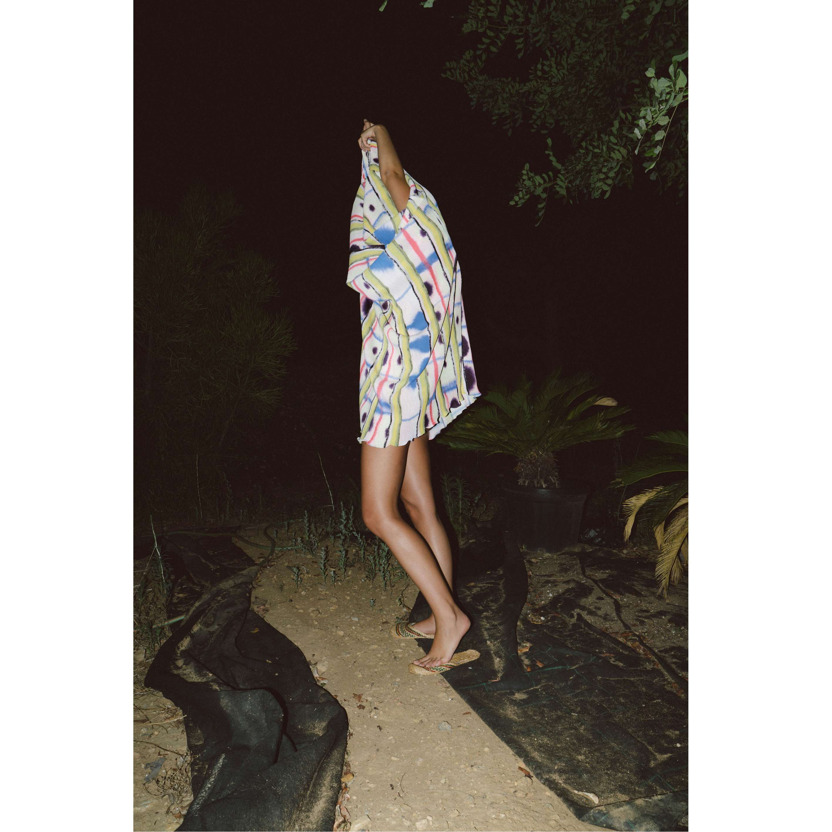 19年夏のコレクションは、スベンヤが拠点とするポルトガルにあるリゾートの地名「Moncarapacho(モンカラパッショ)」がタイトル。夏の空や海、地理的に近いモロッコのサハラ砂漠や民族衣装、そしてアンリ・マティスの絵画やダニエル・ビュレンによるパブリックアートなどから着想を得たコレクションだという。