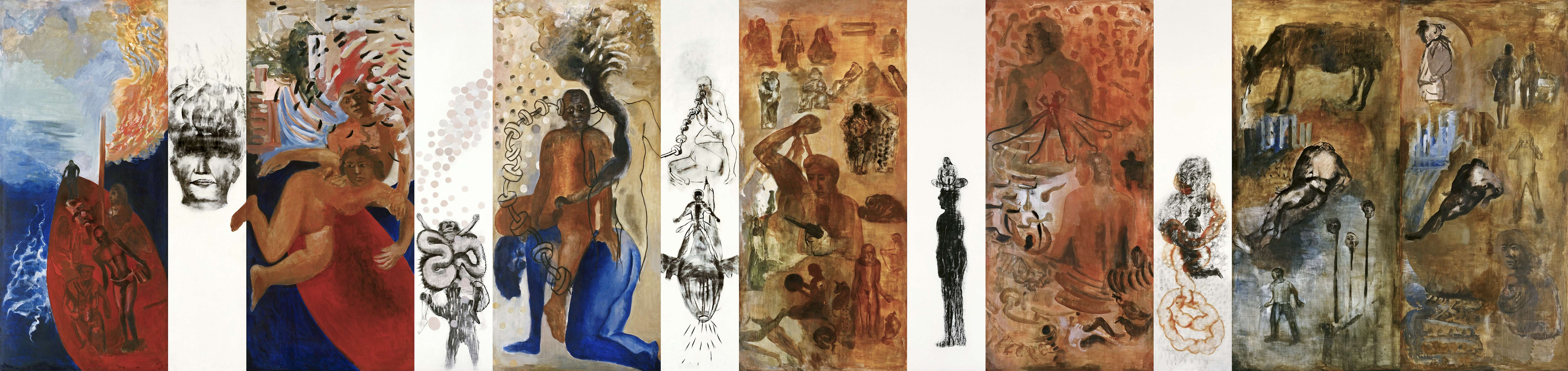石膏ボードにアクリル絵具、木炭 244×940cm 福岡アジア美術館蔵
