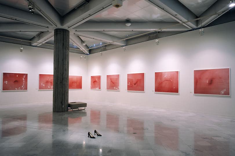 Pink #1-#9 1996/2001 「揺れる女/揺らぐイメージ」展(栃木県立美術館、1997)での展示風景