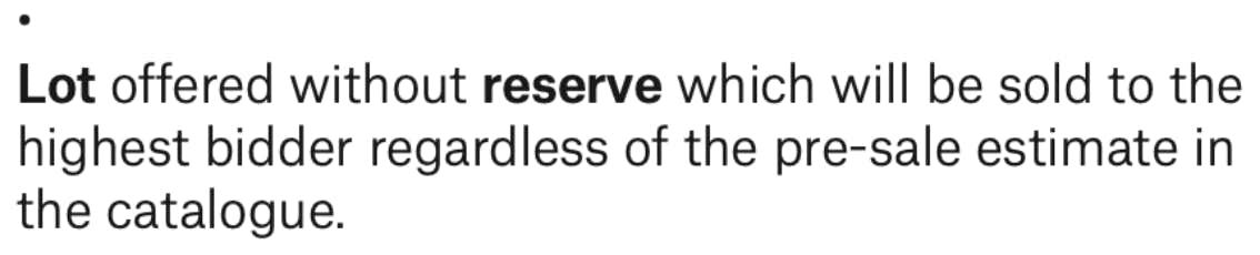 筆者訳:カタログにおけるセール前のエスティメートにかかわらず、ロットはリザーブなしで出品されており、もっとも高額の入札者に売却されます SYMBOLS USED IN THIS CATALOGUE 出典=クリスティーズ・ニューヨーク Post-War and Contemporary Art Evening Saleカタログ(2019年5月15日開催)347頁