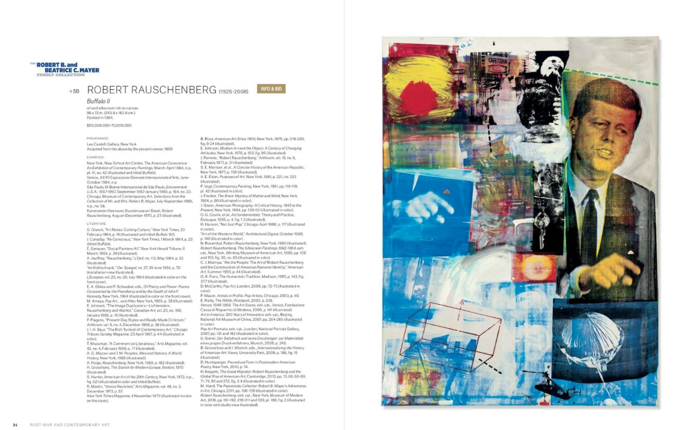 ロバート・ラウシェンバーグ《Buffalo II》の出品ページ 出典=クリスティーズ・ニューヨーク Post-War and Contemporary Art Evening Saleカタログ(2019年5月15日開催)34-35頁