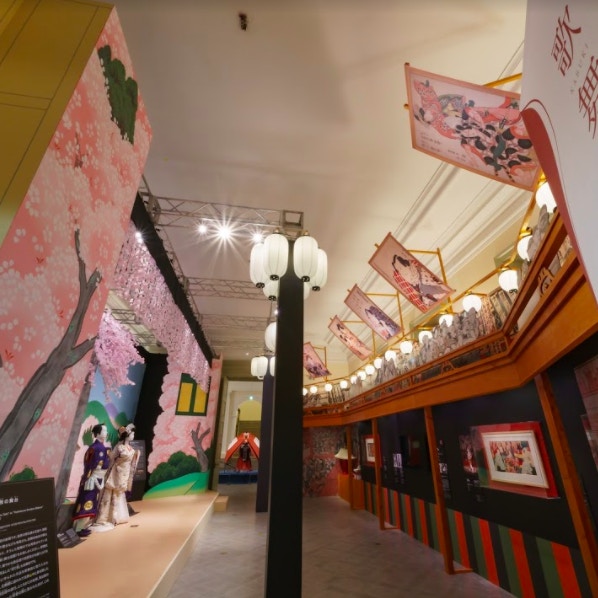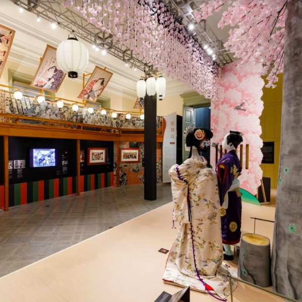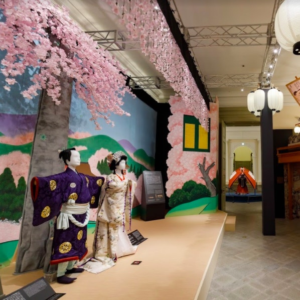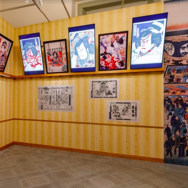 第1章「歌舞伎」では、歌舞伎の代表作である『義経千本桜』をテーマに、桜花爛漫の吉野山の明るく華やかな舞台を再現。ほかにも、明治期に活躍した浮世絵師・豊原国周の描いた錦絵や、舞台で使用される仕掛け付きの小道具、華やかな歌舞伎衣裳・鬘を見ることができる。第2章は「文楽」。『本朝廿四孝(ほんちょうにじゅうしこう)』の「奥庭狐火の段(おくにわきつねびのだん)」の再現舞台により、文楽特有の舞台の構造を可視化。3人で1体の人形を動かす「三人遣い」を紹介する。