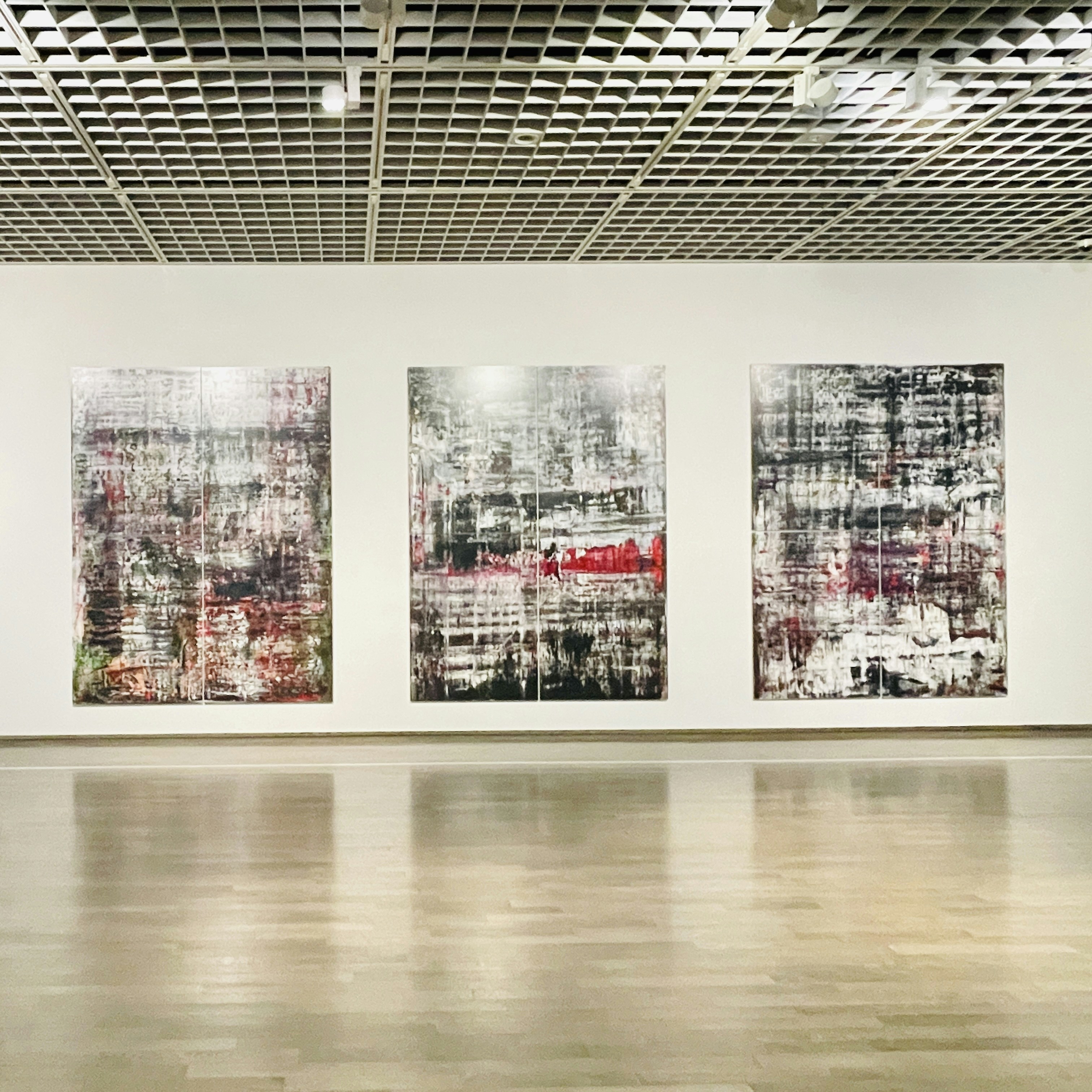それはコロナ禍において、リヒターという現代美術の最高峰へどのように登るかという冒険に乗り出すことでもあった。リヒター峰の前には、現存作家とは思えないほどの量の研究書・展覧会カタログという、これまた登攀にザイルなどが必要そうな実にごつごつとした山々が控えている。リヒター展を担当するということは、光栄なことであるとともに、大変な重責に感じられた。のちに痛感するのだが、そうした山々に立ち向かう遥か手前の平地と思われていた地点で、予期せぬ実務的な難所が多々あって、頭を抱えたり、どうしようもなくて思わず笑ってしまったりすることもあった。展覧会づくりのつねだが、完璧な展覧会などありえない。よりよい選択と思われるものを選びとることの連続でしかない。いずれにしても、リヒター展の準備は新型コロナウィルスによる混乱とともに始まった。