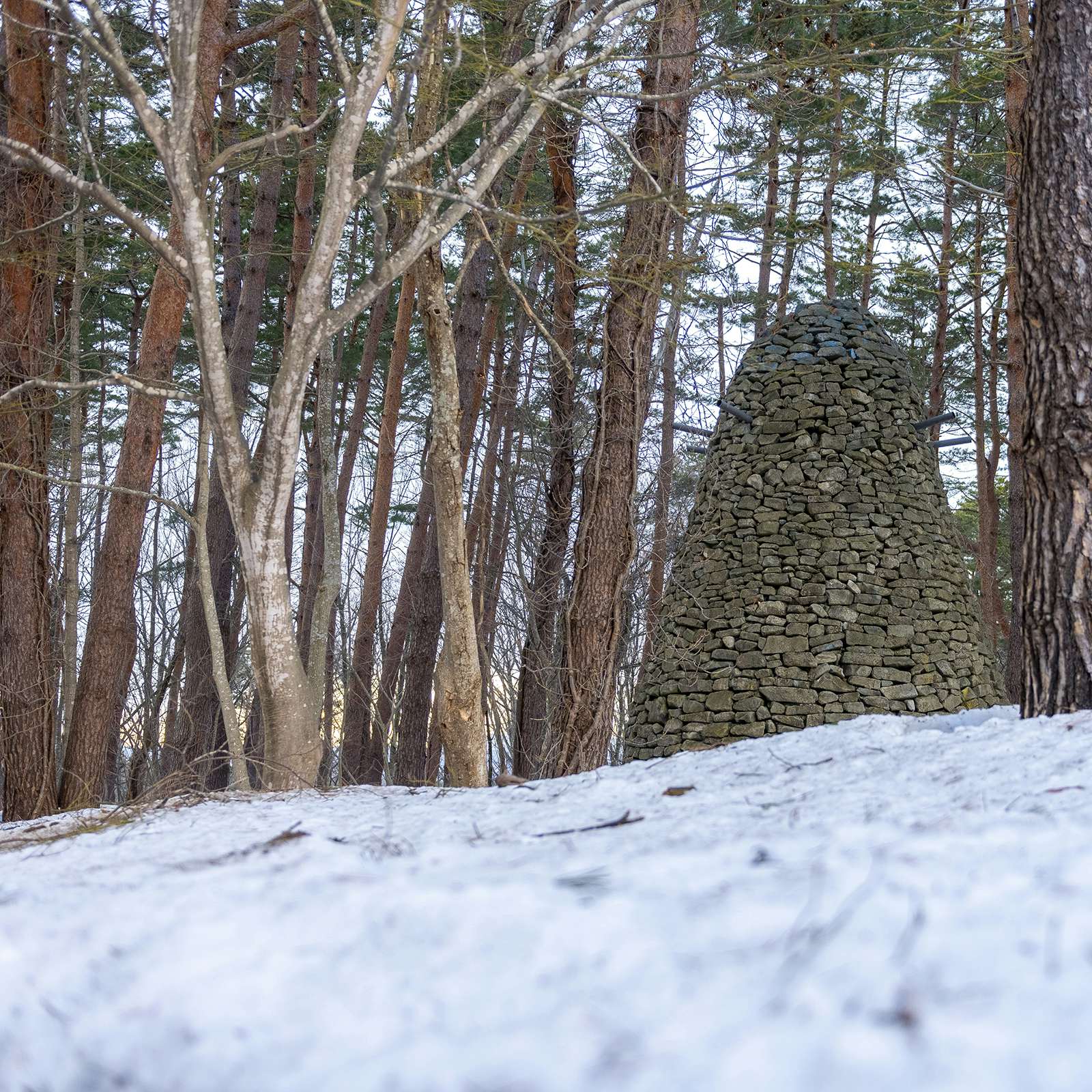 雪が積もっていたので観に行かなかったのだが、森の中には様々な彫刻が設置されているようである。それらの彫刻は、クレラーミュラー美術館などとは異なり、「イギリスのグライズデール方式っていうか、自然の中で極端にいえばそのまま朽ちていってもいいようなもの」にしたと浜田は語っている。