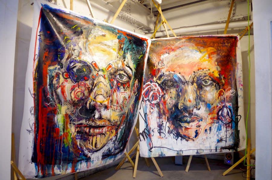 2点とも亜鶴の作品。左は《Void》(2017)、右は《Your mom was saying that she liked a flower》(2017)