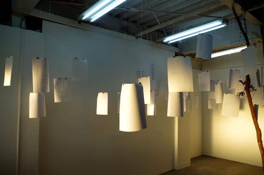 市川太郎 思い出したくもない思い出ども 2017 コピー用紙にインクジェット、テグス、ダブルクリップ