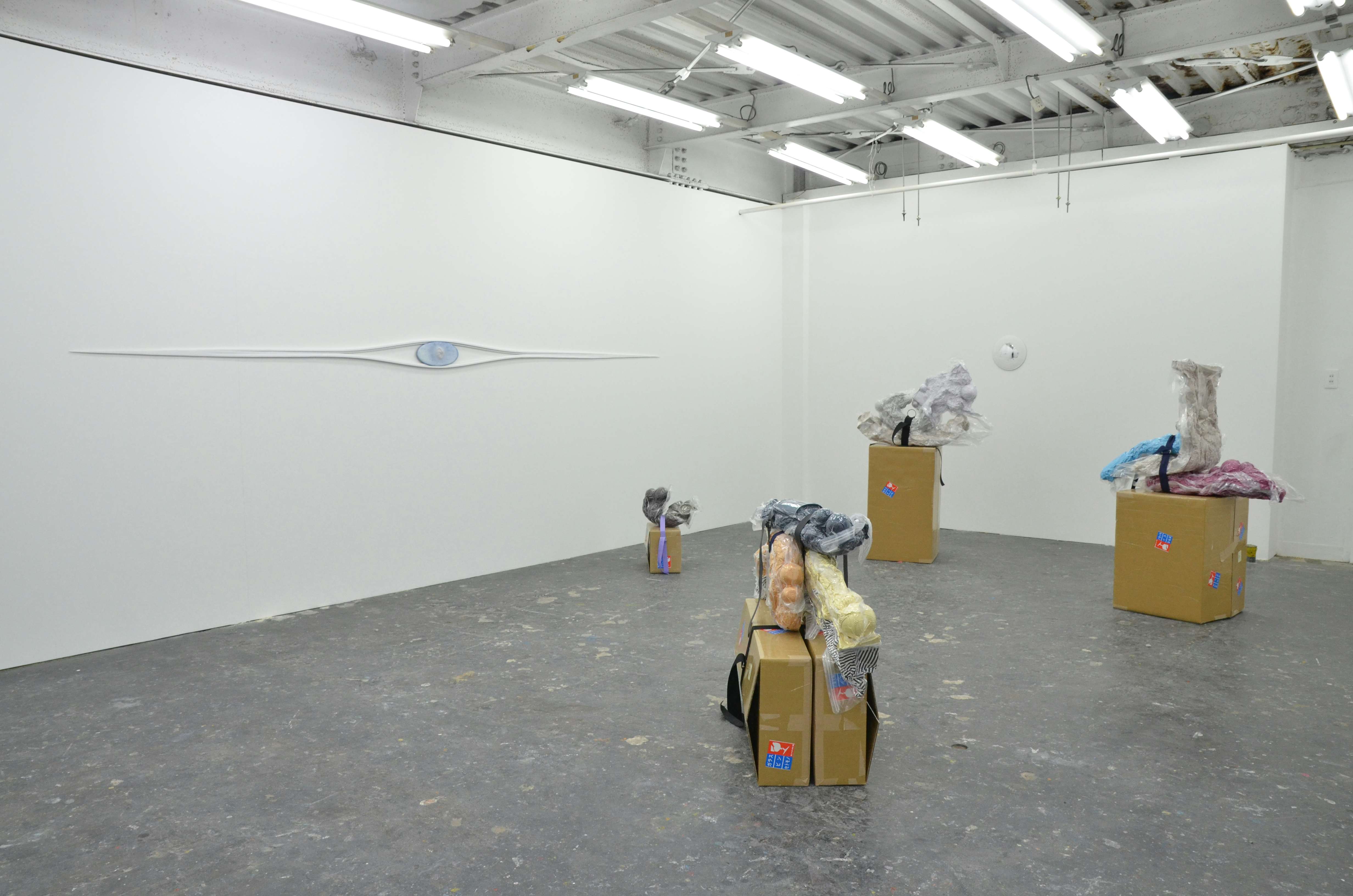 手前4点は、鈴木操《無題(Non-homogeneous arrangement)》(2017)。右奥は角田啓《視線と風景》(2017)、左は角田啓《水平線の展開II》(2017)