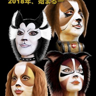 ところで、「これは凄い」と僕が唸ってしまったのが、彼女が9歳からつくり続けている家族の年賀状だ。ひとくちに年賀状といっても、そのクオリティが尋常ではない。戌年ということで劇団四季のミュージカル『CATS』を『DOGS』とパロディ化した今年の年賀状は、白塗りにした家族4人の顔を撮影し、それをペンタブと画像編集ソフト「Photoshop Elements」を使って人物の上から彩色を施す独自の方法で作成した。