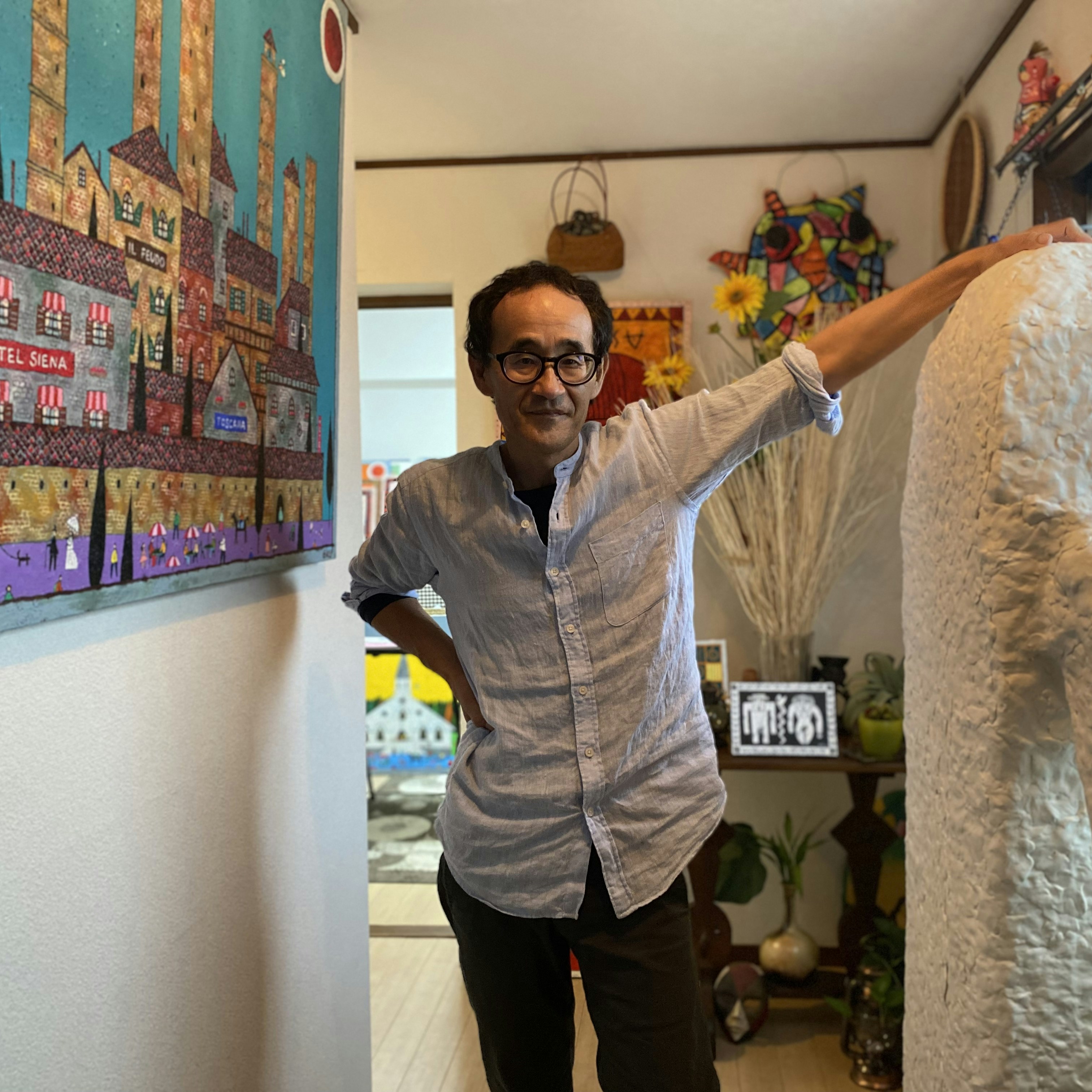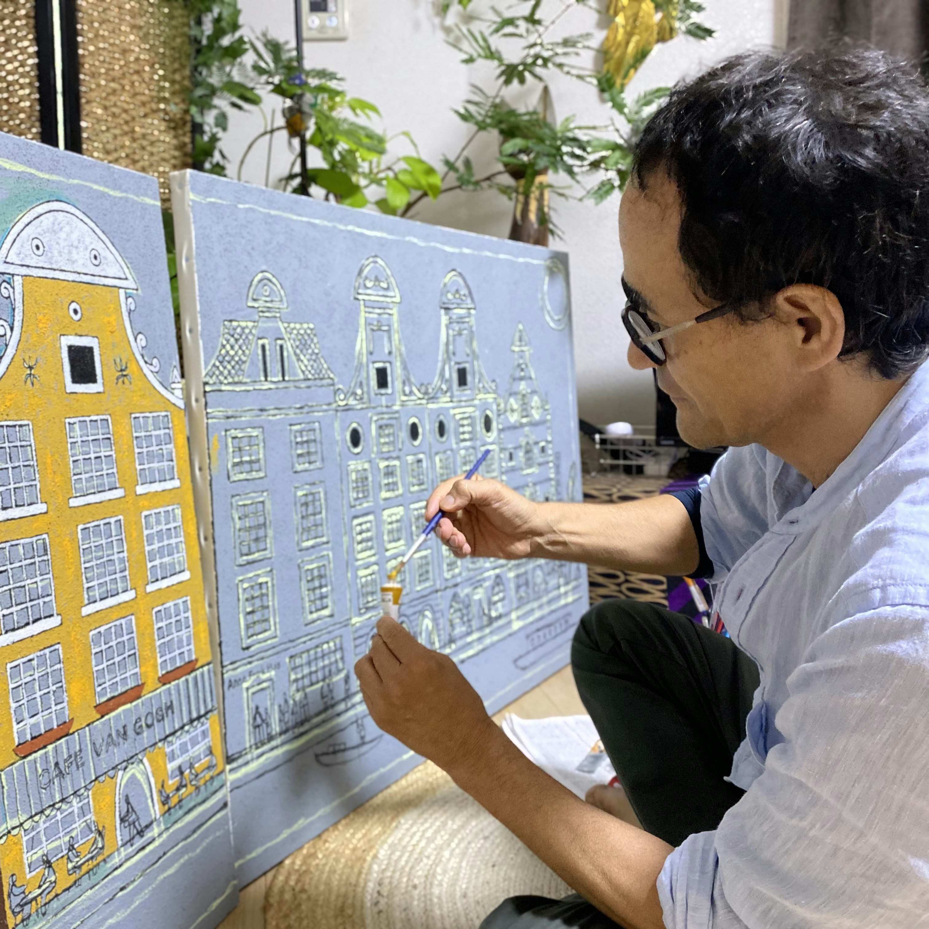 ヨーロッパやアジア、南北アメリカを中心に世界50カ国以上を旅しては、旅先で得たイメージをヒントに絵を描き続けている男性がいる。それが、「旅する画家」を自称する奥村ユズルさんだ。静岡市在住の奥村さんは、独学で絵を描き始め、パレットは使わず、イラストレーションボードにチューブから直接絵の具を塗っていくという技法で、これまで1000点を超える作品を制作している。