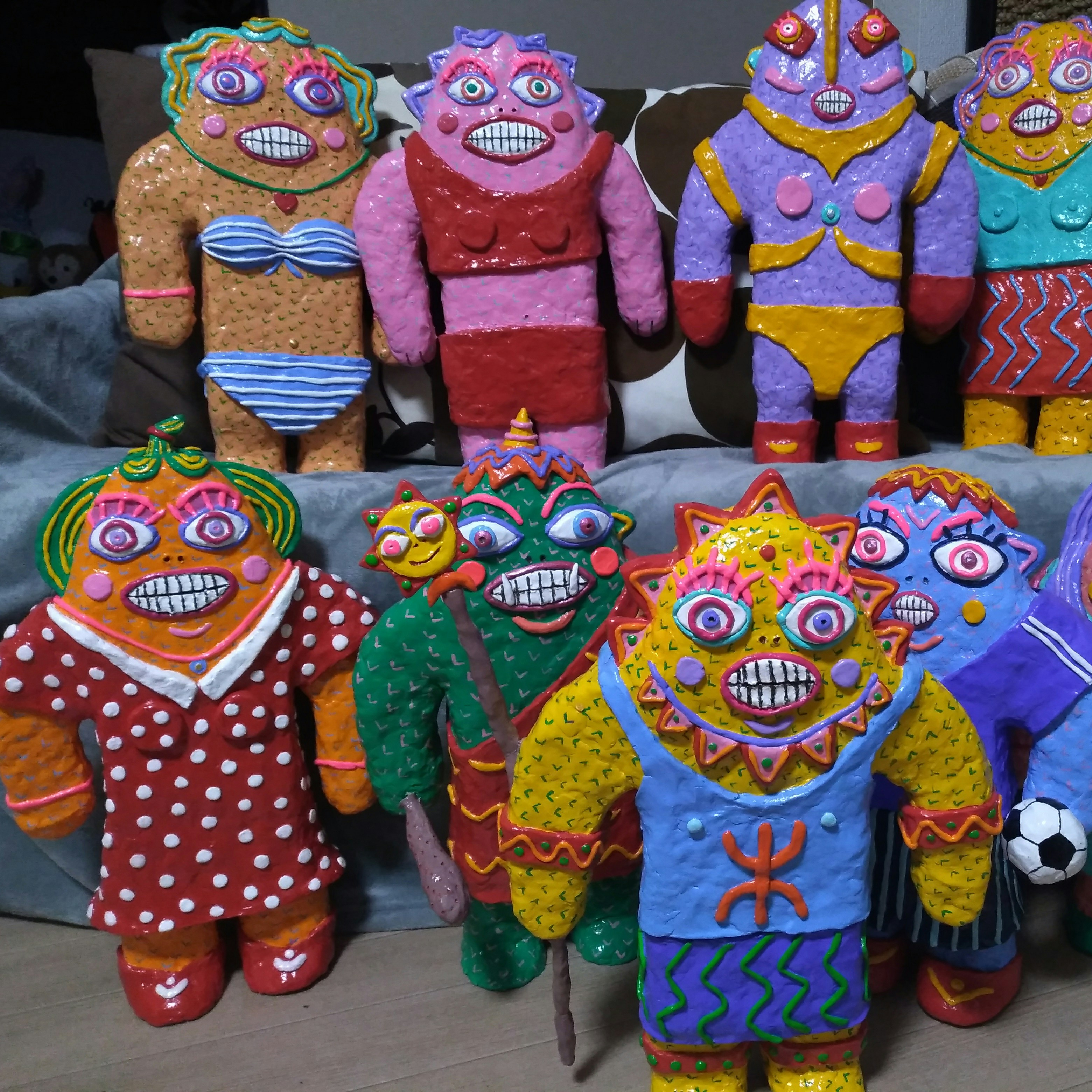 人には誰でも二面性がある。それはアーティストと呼ばれる人だって同様だ。人目に触れる作品をつくるいっぽうで、自分のためだけに制作する表現だってある。だから、明るい雰囲気の絵画だけでなく奇妙な人形の創作は、どちらも奥村さんにとって自分だけの表現なのだろう。そして、「アートのB面」とでもいうべき作品に、いつも僕はどうしようもなく魅了されてしまう。自分が自分であるために、ただつくり続ける。これ以上、制作するための原初的な動機はないはずだ。