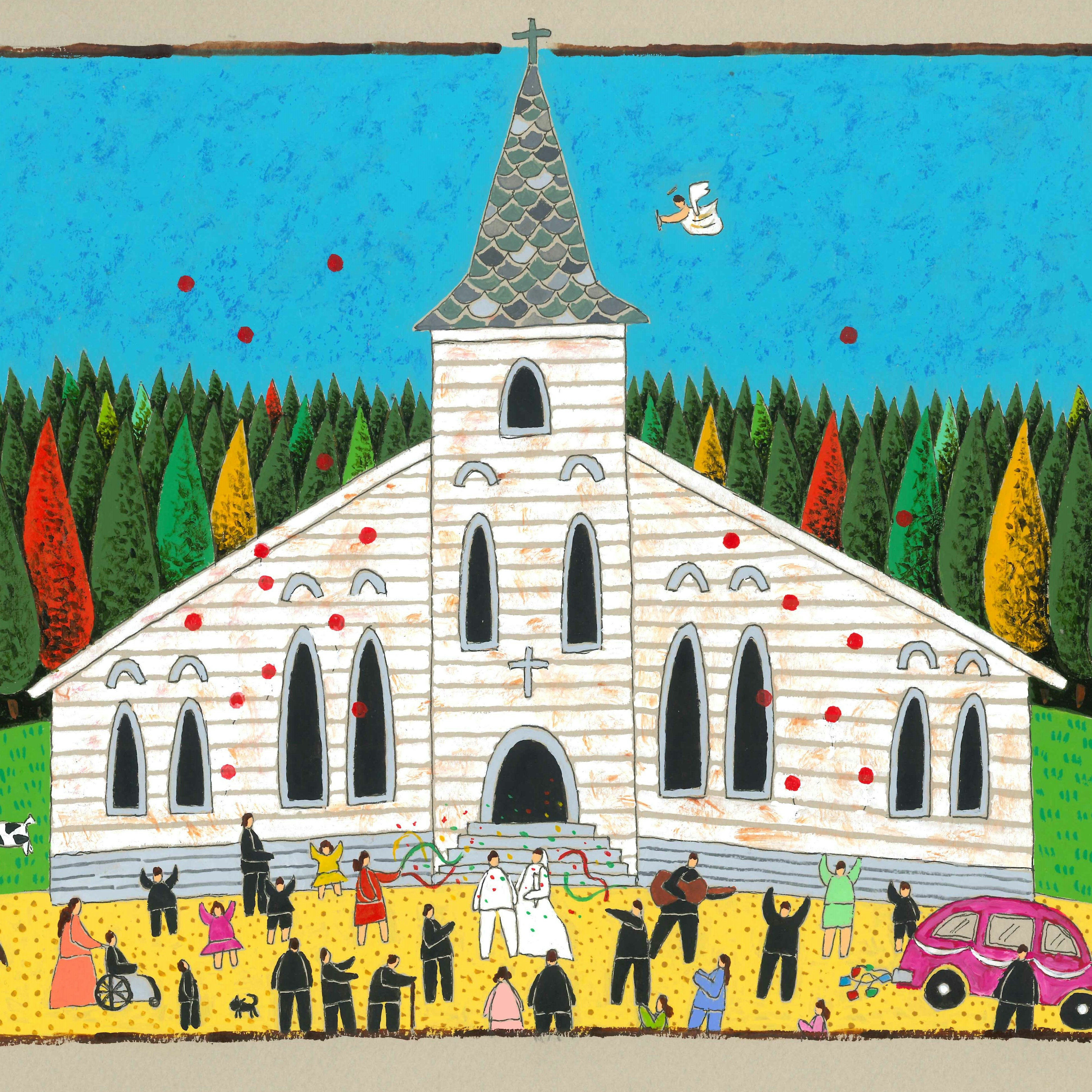 奥村さんの絵で特徴的なのは、画面の中に杖をついたお年寄りや車椅子に乗った障害のある人、ベビーカーを押しているお母さんなど、多様な属性の人たちが描かれていることだ。福祉の世界へ長く身を置く奥村さんにとって、さまざまな個性を持つ人をそのまま社会の中に包摂する「ソーシャル・インクルージョン」の原理を具現化したものが、自身が描く絵となっている。