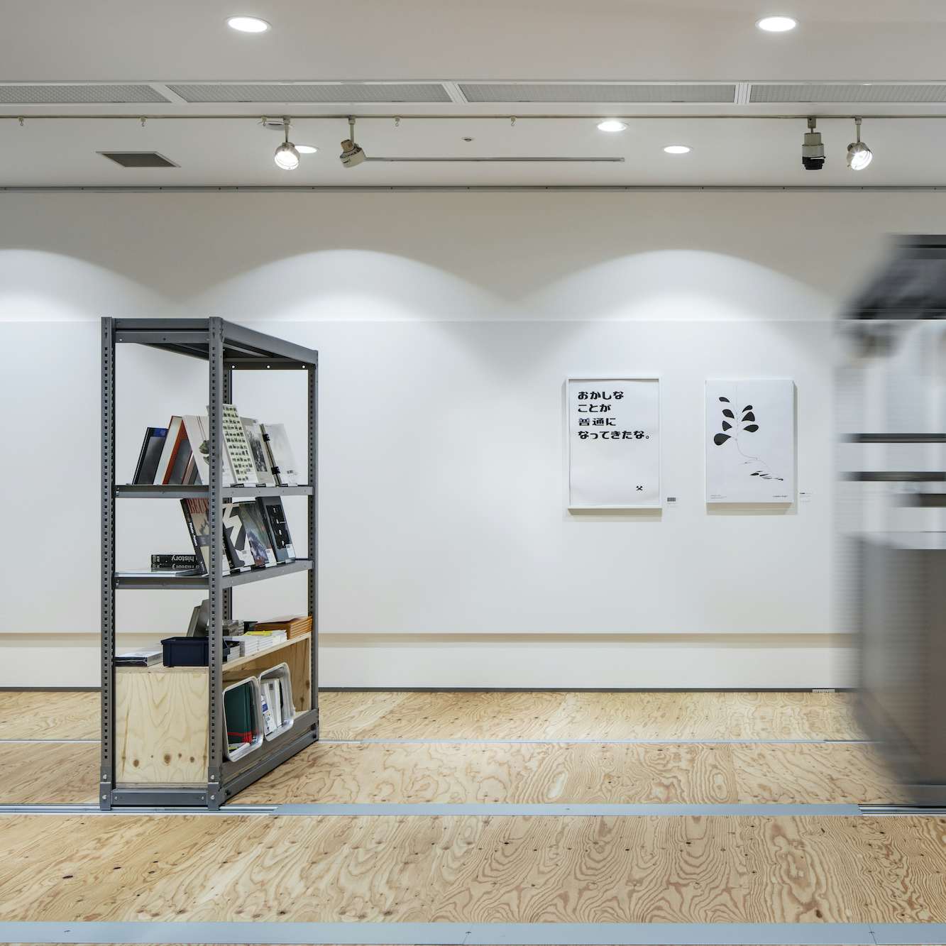 このように、展示が変わるたび、自在にゾーニング変えることができる空間が実現されているが、もっとも興味深いのは、店舗内装の定石に縛られないことによって、ショップ名に沿った「第5の展示室」というコンセプトを体現しつつ、いっぽうで見る者にとっては、どこか新鮮な感覚を与えていることだ。以前のショップもそうだったが、通常、なるべく棚什器で壁面を埋めることによって商品の陳列数を少しでも多く稼ぎ、棚に壁面を背負わせることで、商品を立て掛けることができるなど、より陳列し易くしようとするのが、店舗内装のセオリーではある。が、ここでは壁面は空白のままで、販売している平面作品などがいくつか飾られているだけだ。