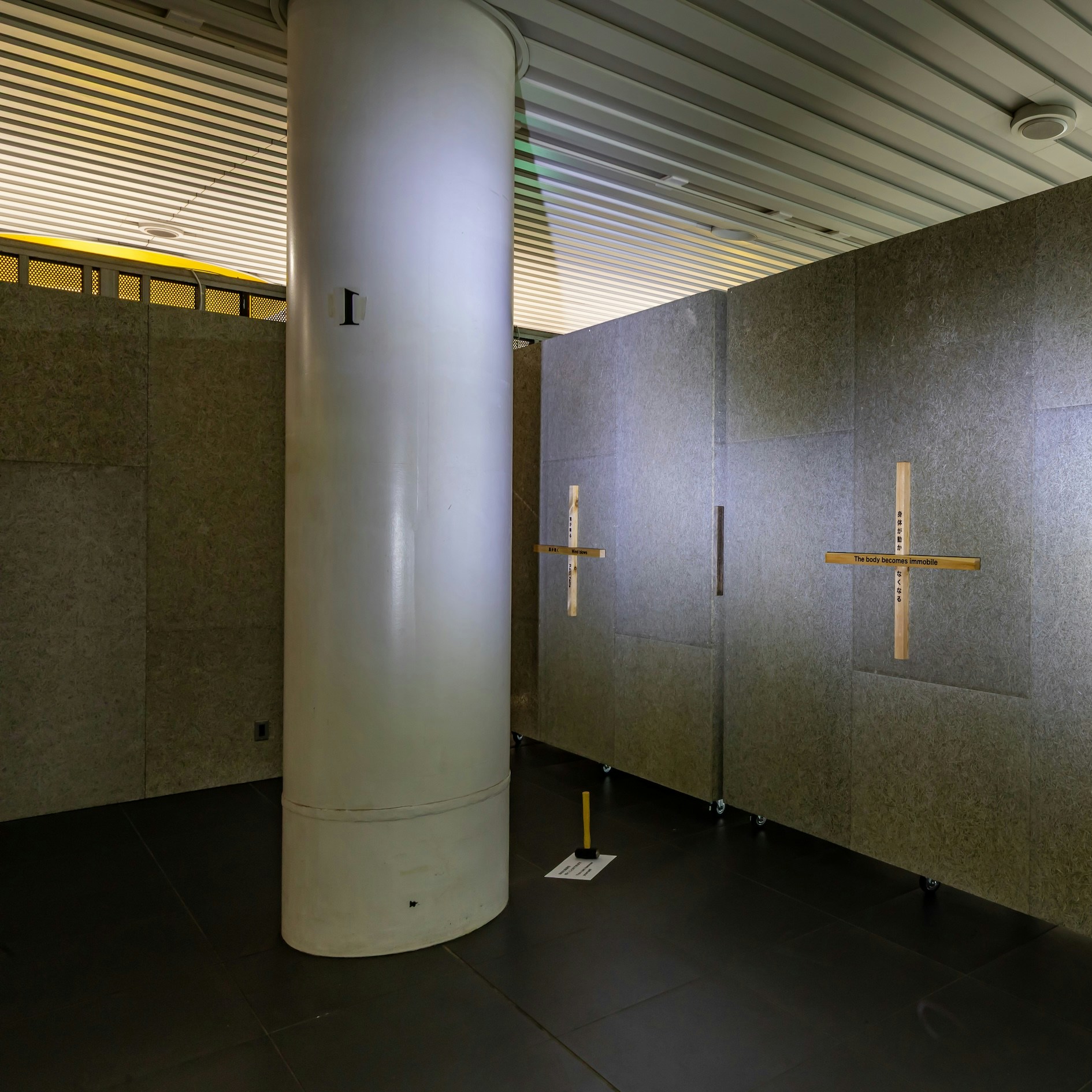 2025年6月、横浜市の新高島駅地下1階にArt Center NEWがオープンした。運営代表の小川希のステイトメントに示される通り、ソーシャルメディアによって加速した世界のフラット化は、悲惨な虐殺から芸能人の不倫まで、わたしたちの情動をジャックする即時的な情報を等価に循環させ、世界との遭遇を未知(NEW)として受け取る感覚そのものを麻痺させてきた。9月12日から14日に開催された本展では、アジア各地のオルタナティブスペースとコレクティブが集結するフィジカルな場を設け、等価な情報空間とは別の回路で未知への感覚をつなぎなおしてみせた。さらに、13日に行われた橋本聡《数秒、数日》は、展示空間に配置されたインストラクションを介して、パフォーマー(小山友也、阪口智章)と鑑賞者をその実行者として等価な機能に還元するフラットな空間を設計した。同時に「息を止める/息が止まる」といったインストラクションが、鑑賞者の身体感覚に微細なズレを生じさせ、予測可能で効率的な情報の伝達回路にねじれをもたらす。外に開かれたネットワークと感覚の内に折り返されるインスタレーション。身体をフィジカルな夾雑物として介在させるこれらの方法もまた、フラットな情報空間の内部から世界の複雑さと出会い直す場を再編する実践と言える。