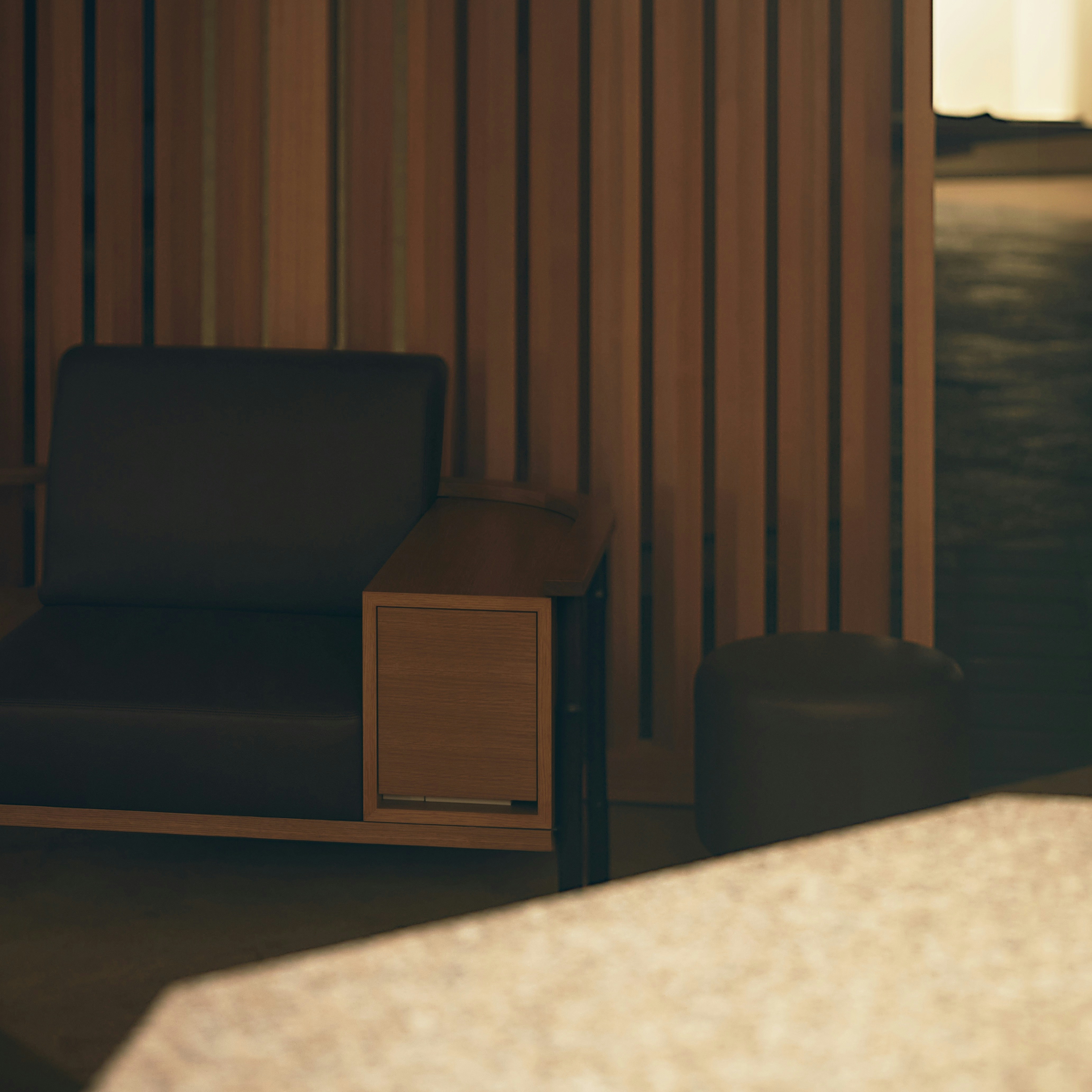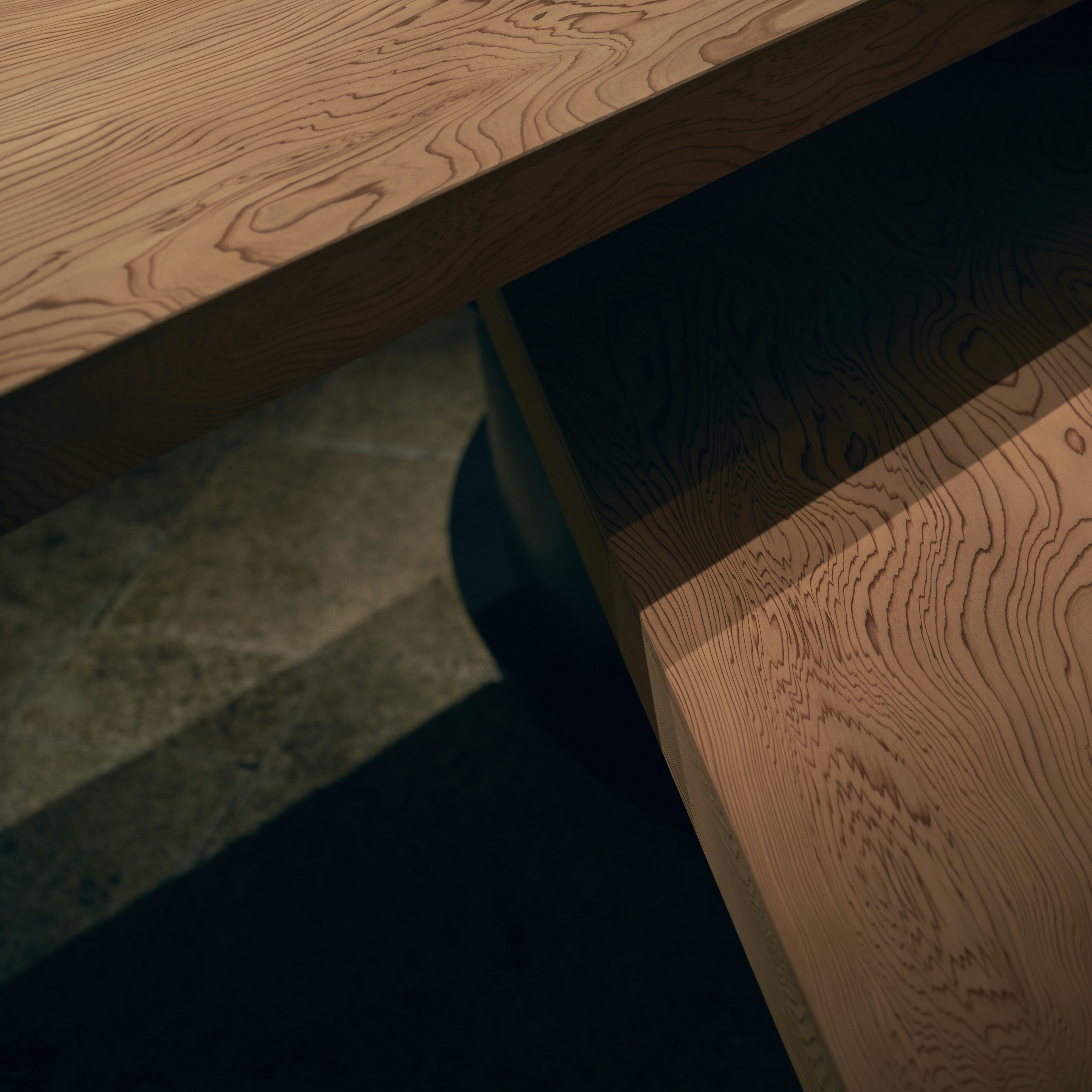 フロア中央部では樹齢千年を越える2枚の巨大な霧島杉が和光のルーツである時計の長針と短針のように交差し、自在に形を変える。様々な用途に使用可能な「舞台」としての活用が可能だ。この周囲を「回廊」がぐるりと囲み、回遊するように様々なクリエイターが手がけたプロダクトと出会うことができる。