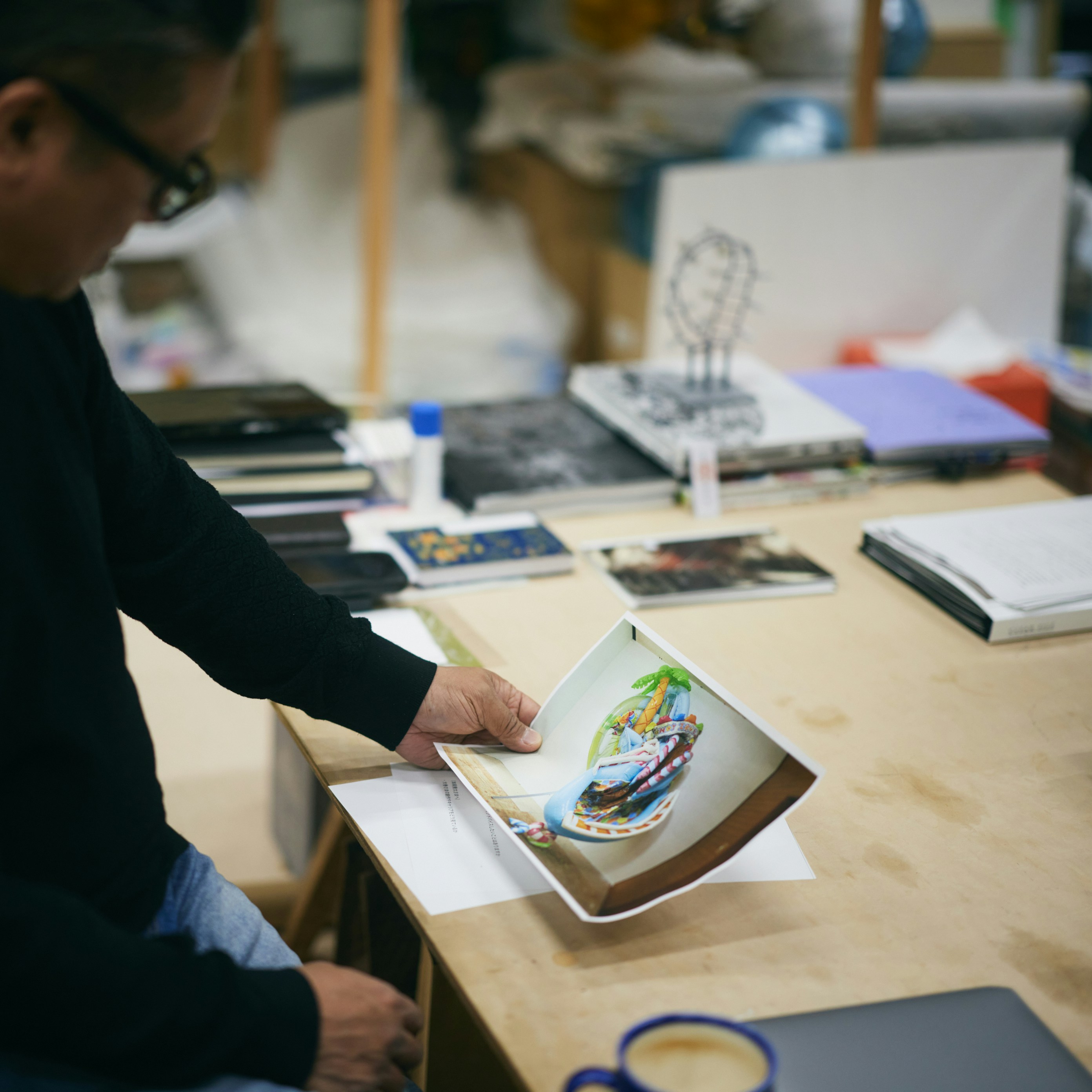 大巻伸嗣(以下、大巻) 私が参画したのは「ARTISTS' FAIR KYOTO 2025」からです。AFKディレクターの椿昇さんから連絡をいただき、アドバイザリーボードへの誘いを受けました。日本のアート界で若いアーティストがどう自活していくかを考え、実践する場だとの説明を聞いて、その趣旨に賛同しました。そうした課題については、私も以前から気にかけていたので。AFKはすでにお寺など開かれた場所でフェアを展開してきており、多様な対話が生まれる場を毎年つくり上げています。アトリエに籠もりがちな学生や若手アーティストにとってAFKは、「外の世界」や「アートを買う人」との接点を見出す、いいきっかけになるでしょうから、まずは私自身の参加を決めました。