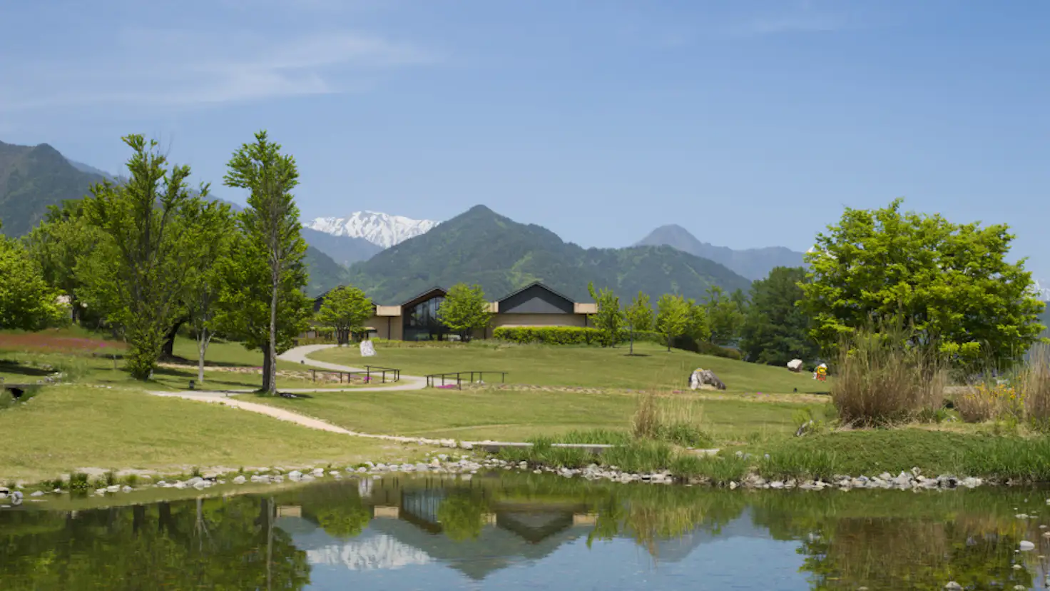 木のぬくもりが感じられる館内は、自由に絵本を読むことができる絵本の部屋、おもちゃで遊べる子供の部屋、オープンテラスのある絵本カフェやミュージアムショップを有する。また周囲には、安曇野ちひろ公園(松川村営)が広がり、四季折々の花々を楽しみながら、清流・乳川の川辺を散策することができる。